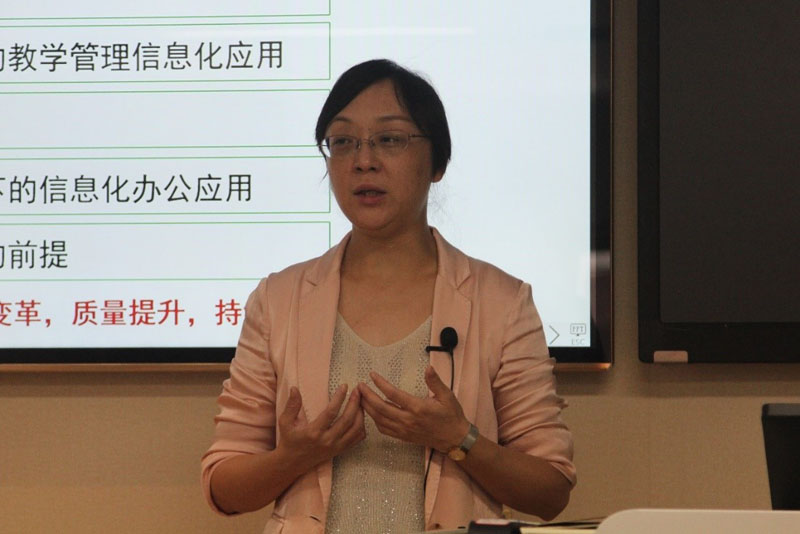 顏慶女士作了題為《智慧校園建設(shè)與應(yīng)用規(guī)劃設(shè)計——以信息化應(yīng)用賦能學(xué)??茖W(xué)管理》的報告,她從職業(yè)學(xué)校四化管理的基本原理、OKR工作法的基本原理與應(yīng)用、智慧校園建設(shè)與應(yīng)用頂層規(guī)劃、智慧校園成功應(yīng)用的關(guān)鍵點等方面作了詳細(xì)介紹,為興文職校信息化規(guī)劃提供了思路。