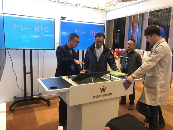 論壇同期舉辦了展會(huì),依能攜“新一代多媒體教室”解決方案參展,受到眾多參會(huì)領(lǐng)導(dǎo)的高度評(píng)價(jià),紛紛駐足上手體驗(yàn)?;谖⒅v師智能講臺(tái)的新一代多媒體教室操作簡(jiǎn)單,采用停電也能書(shū)寫(xiě)的液晶光能板,無(wú)塵、環(huán)保,接入大屏顯示設(shè)備,徹底告別傳統(tǒng)黑板粉筆時(shí)代。集屏幕電子板書(shū)、資料及實(shí)驗(yàn)拍攝、無(wú)線麥克音響系統(tǒng)、課堂實(shí)錄等功能為一體,讓不同年齡階段、不同信息化應(yīng)用水平的老師,無(wú)論是否有電子教案,經(jīng)過(guò)幾分鐘的學(xué)習(xí)使用后即可輕松在課堂開(kāi)展高質(zhì)量的多媒體教學(xué)。