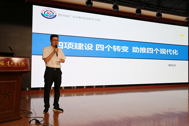 福建省職業(yè)技術(shù)教育學(xué)會會長陳瑞晶、福建工業(yè)學(xué)校校長林俊標等領(lǐng)導(dǎo)出席會議。作為今年福建省職業(yè)技術(shù)教育學(xué)會系列專題活動之一,本次研討會邀請了中國教育裝備行業(yè)協(xié)會研究院施建國副院長、依能職業(yè)教育研究所王硯研究員、福建省上杭職業(yè)中專學(xué)校張先琳校長和廣元市職業(yè)高級中學(xué)校鄧仕川副校長作專題報告。福建省各中職學(xué)校領(lǐng)導(dǎo)、教務(wù)處負責(zé)人、信息中心負責(zé)人等100余名代表參加了會議。