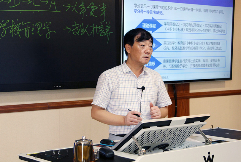 培訓(xùn)伊始,教育部現(xiàn)代遠(yuǎn)程教育資源建設(shè)專家組成員、國家金教工程技術(shù)組專家羅輝副教授作了《職業(yè)院校專業(yè)人才培養(yǎng)方案的原理與開發(fā)》主題報(bào)告,闡述了專業(yè)人才培養(yǎng)方案的價(jià)值和作用,為大家理清了教務(wù)管理相關(guān)的幾個(gè)重要概念,同時(shí)也詳細(xì)講解了專業(yè)人才培養(yǎng)方案的原理、內(nèi)容構(gòu)成、開發(fā)方法與應(yīng)用等內(nèi)容,為職業(yè)院校專業(yè)人才培養(yǎng)方案的開發(fā)與實(shí)施提供了清晰的思路。