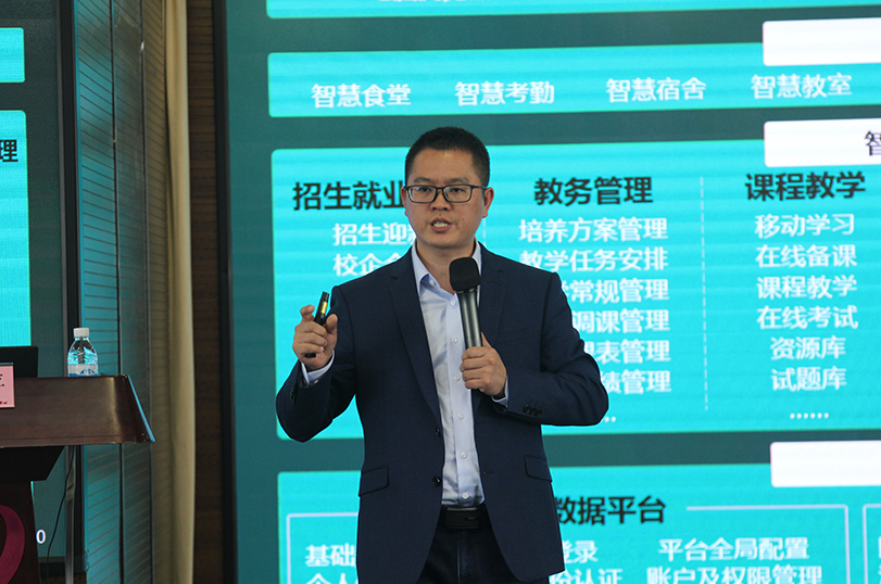 依能職業(yè)教育研究所、成都依能科技股份有限公司副總經(jīng)理申鴻平作了關(guān)于《中職學(xué)校智慧校園平臺建設(shè)及應(yīng)用推進(jìn)策略》技術(shù)報告,詳細(xì)講解了建設(shè)整合集成智慧校園平臺的三種路線方案,分析三種方案其利弊,并總結(jié)出由行業(yè)應(yīng)用廠商提供功能全面的通用產(chǎn)品是最優(yōu)建設(shè)方案;同時提出了智慧校園推進(jìn)應(yīng)用的五大策略:一是轉(zhuǎn)變理念、高推動,二是流程再造、制度體系保障,三是使用開局、分工明確,四是運(yùn)維安全保障,五是信息素養(yǎng)、信息化領(lǐng)導(dǎo)力提升,為學(xué)校如何建設(shè)與推進(jìn)智慧校園提供了高效的建設(shè)方案與推進(jìn)策略。