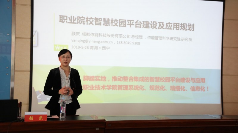成都依能科技股份有限公司總經(jīng)理顏慶在會上作了《職業(yè)院校智慧校園應用平臺建設與應用規(guī)劃》報告,她就智慧校園應用平臺如何全面支撐學校的教學與管理、教育教學質(zhì)量保證體系的構(gòu)建、物聯(lián)網(wǎng)整合集成應用、信息素養(yǎng)與信息化領導力等方面進行了講解,并表示依能高度重視學院“基于SaaS云服務智慧校園平臺項目”,成立以總經(jīng)理為領導的項目實施管理小組,確保該項目保質(zhì)保量完成,推動智慧校園SaaS云服務在學院的應用。