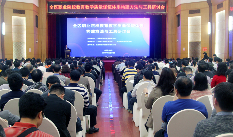 2019年3月29日,由廣西職業(yè)教育發(fā)展研究中心主辦,廣西理工職業(yè)技術(shù)學(xué)院、依能職業(yè)教育研究所承辦,成都依能科技股份有限公司技術(shù)支持的“全區(qū)職業(yè)院校教育教學(xué)質(zhì)量保證體系構(gòu)建方法與工具研討會”在廣西南寧成功舉辦,來自全區(qū)140余所學(xué)校近500位中高職院校領(lǐng)導(dǎo)、中層干部等參加了本次研討會。