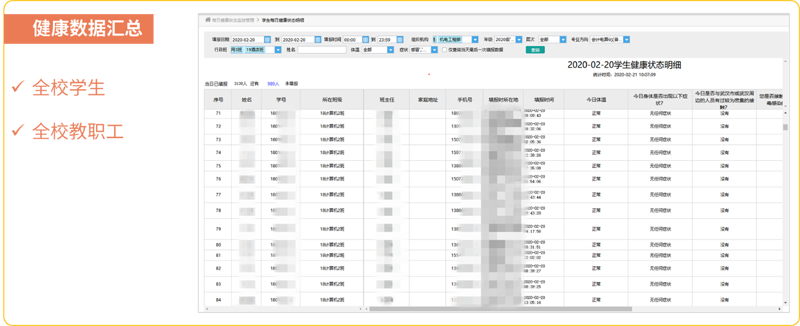 【學(xué)校疫情指揮部】平臺自動匯總?cè)W(xué)生、教職工健康狀態(tài)數(shù)據(jù),導(dǎo)出上報