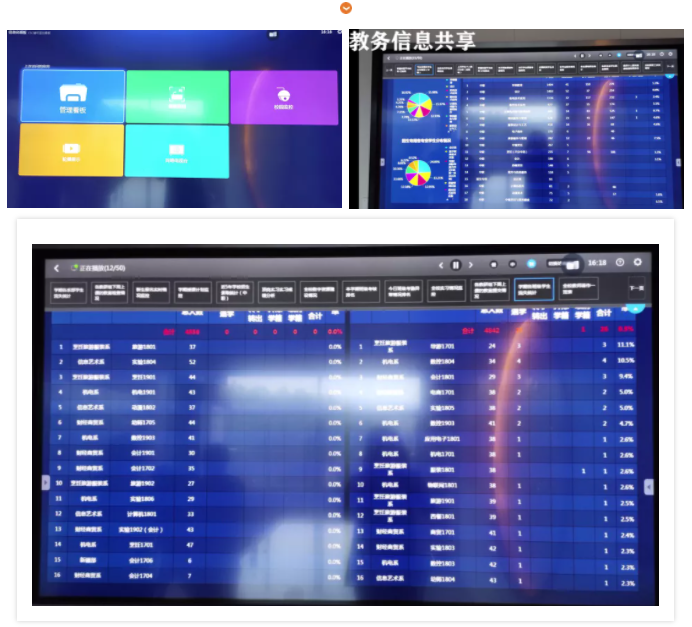 教務(wù)的智慧化,是通過教務(wù)信息的共享協(xié)同,提高教務(wù)管理工作效率,改革教學模式、手段與方法,豐富教學資源,提高教學效率與質(zhì)量。目前,學校教務(wù)管理較好地實現(xiàn)了無紙化辦公,以智慧校園系統(tǒng)實現(xiàn)兩個校區(qū)的協(xié)同管理。教師課務(wù)安排、臨時調(diào)換課、課前點到都可以通過“YN智慧校園App”快速便捷地實現(xiàn)。智慧校園平臺的大數(shù)據(jù)通過信息化看板直觀展示,實時呈現(xiàn)教務(wù)管理信息,方便學校相關(guān)領(lǐng)導及時掌握全面的教務(wù)管理現(xiàn)狀和必要的動態(tài)數(shù)據(jù),為各項決策工作提供有力支撐。