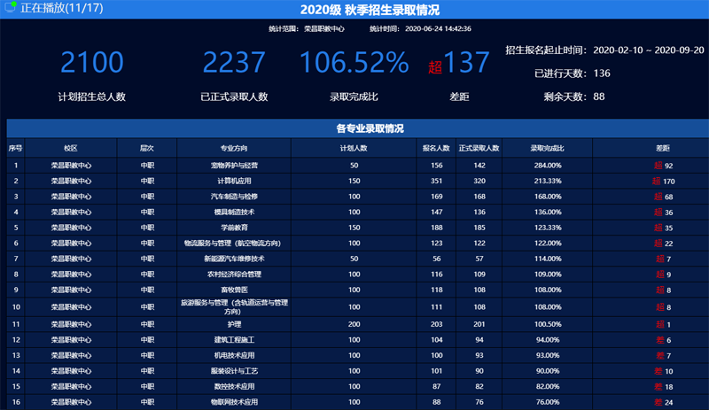 進(jìn)入盛夏,畢業(yè)季已來(lái)臨,各職業(yè)院校的招生工作開(kāi)展得如火如荼。今年受疫情影響,各學(xué)校的招生宣傳工作也轉(zhuǎn)移至“云端”。為了推動(dòng)學(xué)??沙掷m(xù)發(fā)展,保障秋季招生工作順利完成,各職業(yè)院校八仙過(guò)海,各顯神通。其中,重慶市榮昌區(qū)職業(yè)教育中心招生進(jìn)度完成率是106.52%,比計(jì)劃的招生人數(shù)超了279人,比預(yù)計(jì)招生結(jié)束時(shí)間提前了88天。那么,榮昌區(qū)職業(yè)教育中心是如何改變策略走出傳統(tǒng)招生困境、打開(kāi)招生迎新的新局面的?