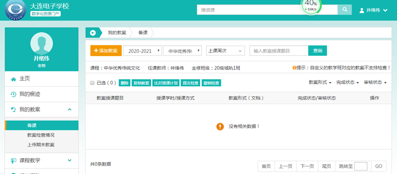 授課計劃和教案在線上傳,便于教案的比對和檢查,也大大進少了紙張的浪費。