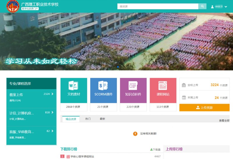 廣西理工職業(yè)技術(shù)學(xué)校通過(guò)開(kāi)展全校品牌(特色)專業(yè)以及精品課程建設(shè),建成了183門的精品課程,并且將教師日常備課資料、教案上傳到智慧校園平臺(tái)進(jìn)行分門別類的管理,實(shí)現(xiàn)了資源的共享,充實(shí)了學(xué)校數(shù)據(jù)中心的資源庫(kù)。