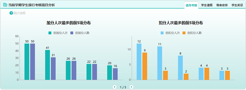 學(xué)校是國(guó)家德育工作實(shí)驗(yàn)基地,一直重視學(xué)生操行考核,傳統(tǒng)的方式采用紙質(zhì)工作手冊(cè),班主任日常進(jìn)行登記,但在統(tǒng)計(jì)分析上,尤其是全校性數(shù)據(jù)統(tǒng)計(jì)上困難極大,自從2017-2018學(xué)年開(kāi)始運(yùn)用智慧校園平臺(tái)內(nèi)“學(xué)生操行考核”功能后,解放了班主任、課任教師和宿管員,教職工可以直接在“YN智慧校園”App中進(jìn)行違紀(jì)和表?yè)P(yáng)行為登記,更方便了學(xué)生處工作人員,效率高、成效好,值得推廣運(yùn)用。