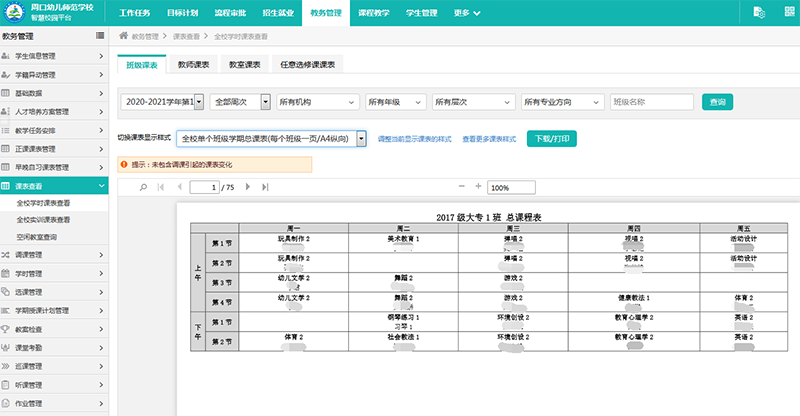 為了將教師和教室的資源利用最大化,降低排課難度,提升排課效率,學(xué)校依托依能智慧校園平臺(tái)排課系統(tǒng),選擇手動(dòng)或自動(dòng)排課,一鍵生成課表。課表自動(dòng)同步,數(shù)據(jù)實(shí)時(shí)共享,滿(mǎn)足學(xué)校排課多樣化需求,縮短了排課周期,提高了排課準(zhǔn)確度,有效減少了排課工作者的排課壓力。