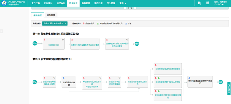 招生工作流程繁瑣、時(shí)間緊、任務(wù)重、數(shù)據(jù)多。周口幼師通過(guò)依能智慧校園平臺(tái)招生就業(yè)系統(tǒng),以信息化高效管理從招生到報(bào)到的全過(guò)程,實(shí)現(xiàn)招生計(jì)劃、新生報(bào)名、新生繳費(fèi)、新生錄取、新生分班、招生信息統(tǒng)計(jì)等各環(huán)節(jié)數(shù)據(jù)共享,保障學(xué)校招生迎新工作高效協(xié)同。