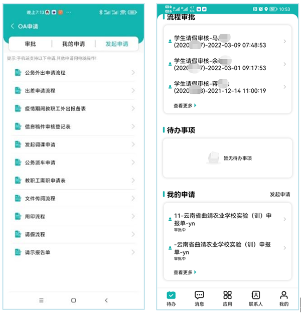 學校各種通知公告、審批流程、日常辦公事務眾多,如何才能擺脫繁瑣冗余的紙質(zhì)化流程,高效辦公?2016年起,曲靖農(nóng)校對傳統(tǒng)的辦公模式進行改革,推進線上OA辦公的使用,逐漸完善了出差、公務派車、物資采購、用印、疫情期間教職工外出報備等信息化管理流程;為解決實驗實訓申報管理繁瑣的難題,學校率先實行了“云南省曲靖農(nóng)業(yè)學校實驗(訓)申報”的信息化應用流程;為解決財務報銷中需有簽字等問題,學校將電子簽章系統(tǒng)嵌入到智慧校園平臺,使各級領導電子簽章和電子公章得以突破應用,實現(xiàn)讓數(shù)據(jù)多跑路、教職工少跑腿的目標。信息化辦公對于提高學校的無紙化辦公水平、節(jié)約辦公費用、提高工作效率、建設節(jié)約型校園起到了重要作用。