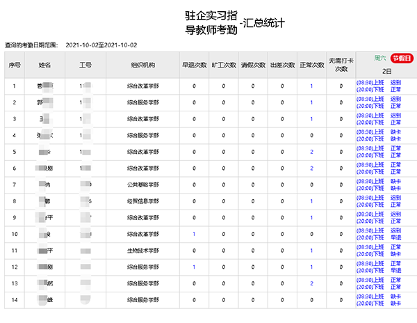 為加強對外派駐廠實習指導教師的管理,2021年,學校通過智慧校園系統(tǒng)位置+人臉考勤模式,實現(xiàn)對駐廠實習指導教師的有效管理。