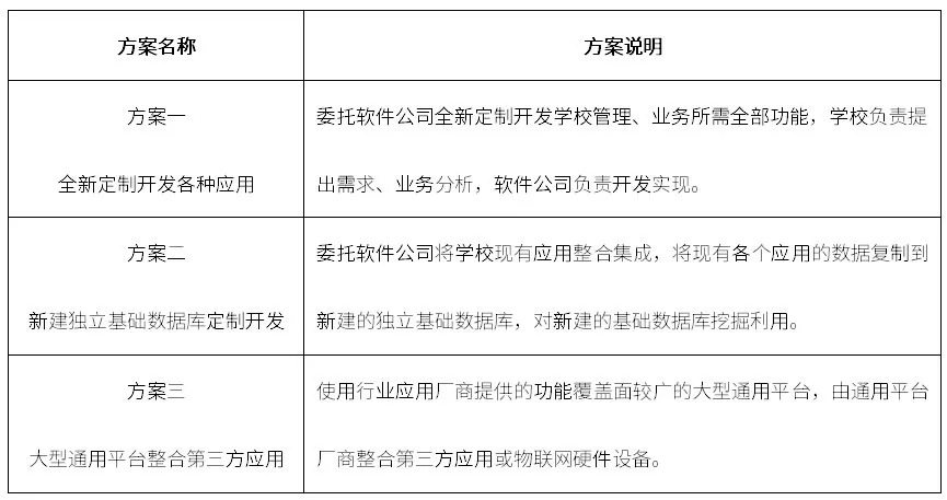 表1 智慧校園平臺(tái)整合集成的三種路線方案