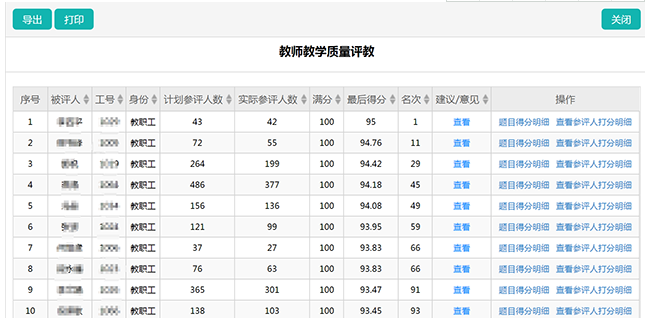 4.評教結(jié)果難統(tǒng)計:由于各種各樣的評教,人數(shù)較多,表格較多,導(dǎo)致評教難以統(tǒng)計結(jié)果,耗費大量人力及時間。