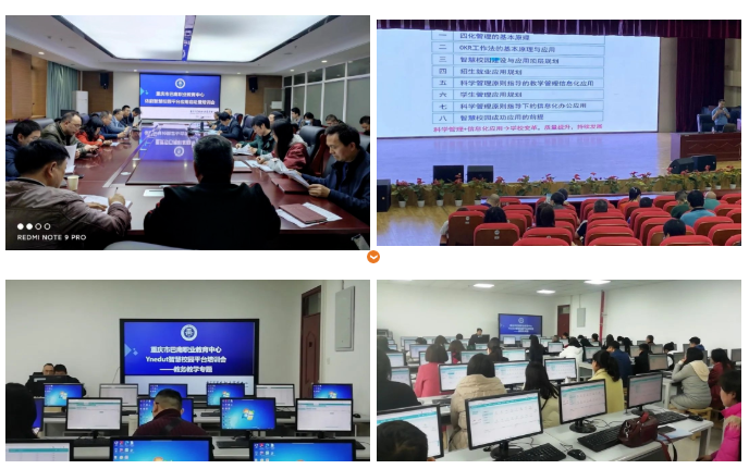 智慧校園“建”是基礎(chǔ),“用”是關(guān)鍵,只有把信息技術(shù)融入到學(xué)校管理、教學(xué)、服務(wù)等良性循環(huán)的生態(tài)系統(tǒng)中去,發(fā)揮“一把手”的帶頭表率作用,讓教職工用起來,才能保障智慧校園平臺的成功應(yīng)用。為此,在智慧校園創(chuàng)建初期,巴南職業(yè)教育中心成立了以校長為組長的智慧校園建設(shè)小組,學(xué)校領(lǐng)導(dǎo)定期開展智慧校園建設(shè)研討,為學(xué)校智慧校園建設(shè)引導(dǎo)方向。為了提高學(xué)校的數(shù)字化應(yīng)用水平,讓智慧校園更好地“落地”,學(xué)校全員參與,培訓(xùn)先行,多次分處室分模塊專題專場培訓(xùn),努力提升信息技術(shù)能力,形成了上下同欲的良好的氛圍。
