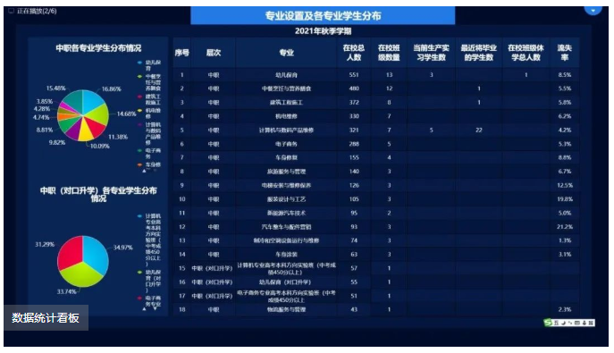 巴南職業(yè)教育中心智慧校園平臺通過統(tǒng)一身份識別、統(tǒng)一數(shù)據(jù)管理,實現(xiàn)對校園、班級、教師、學(xué)生全方位智慧化管理,為學(xué)校管理者收集多維度的數(shù)據(jù)資產(chǎn),數(shù)據(jù)以學(xué)校、專業(yè)、課程、教師、學(xué)生等為主題呈現(xiàn),標(biāo)準(zhǔn)統(tǒng)一、數(shù)據(jù)安全、預(yù)警監(jiān)控,幫助學(xué)校管理人員實時了解學(xué)校教育教學(xué)、管理現(xiàn)狀。通過日積月累的大數(shù)據(jù),形成學(xué)校管理數(shù)據(jù)匯總,助力學(xué)校管理優(yōu)化,為分析決策提供數(shù)據(jù)支撐。