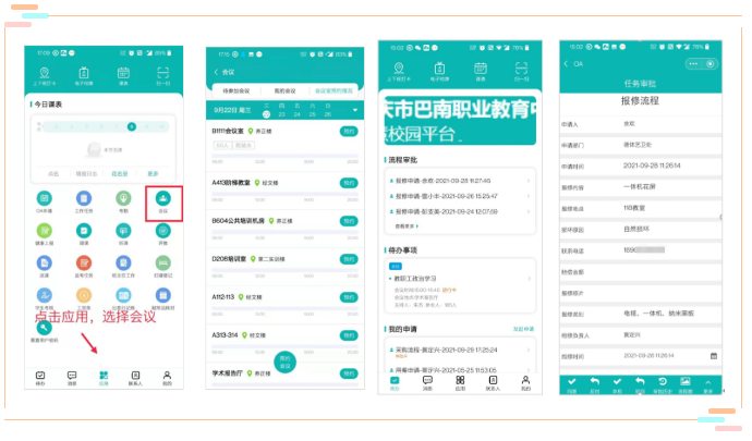 智慧校園云平臺建設(shè)前,巴南職業(yè)教育中心師生校園業(yè)務(wù)辦理和流程審批大量依賴線下辦理和手工簽字,業(yè)務(wù)辦理和流程審批周期長,效率低,給師生造成許多不便。通過智慧校園一站式網(wǎng)上辦事大廳,學(xué)校對校園業(yè)務(wù)流程做了重新梳理,減少業(yè)務(wù)辦理到現(xiàn)場次數(shù),縮短辦事時間,推進(jìn)無紙化辦公,實現(xiàn)跨應(yīng)用、跨部門的協(xié)同運作,并在移動端同步上線,大大簡化審批流程,從此再也不用拿著文件、審批單、請假單滿校園找主任、校長簽字,全校師生可隨時隨地便捷辦理多種校園服務(wù),有效解決了流程審批低效、紙張浪費問題,節(jié)約辦公成本,提高師生服務(wù)體驗,實現(xiàn)數(shù)據(jù)多跑路,師生少跑腿,構(gòu)建綠色、環(huán)保、低碳的智慧校園。