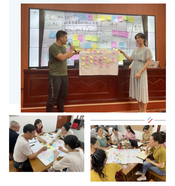 本次活動的一大特色是微課設(shè)計工作坊體驗,在依能專家的帶領(lǐng)下,針對微課的選題、設(shè)計等方面,每所學(xué)校的參培老師分組展開討論和練習(xí)。老師們暢所欲言,研討氛圍熱烈濃厚。