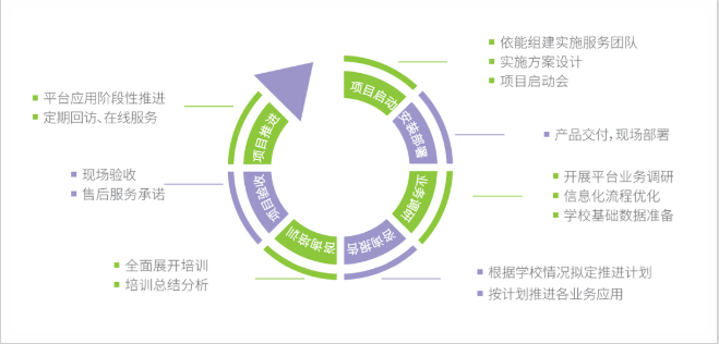 依能教育秉承“以用戶為中心”的服務(wù)理念,在專注打磨產(chǎn)品的同時(shí),堅(jiān)持從用戶的角度出發(fā),為學(xué)校設(shè)計(jì)一套行之有效的服務(wù)體系,建立體系化的服務(wù)流程,組建專業(yè)的售后工程師、咨詢培訓(xùn)師、人工客服等服務(wù)團(tuán)隊(duì),為用戶提供個(gè)性化、多渠道的服務(wù),根據(jù)學(xué)校實(shí)際情況開(kāi)展業(yè)務(wù)調(diào)研、擬定推進(jìn)計(jì)劃、定期回訪等。