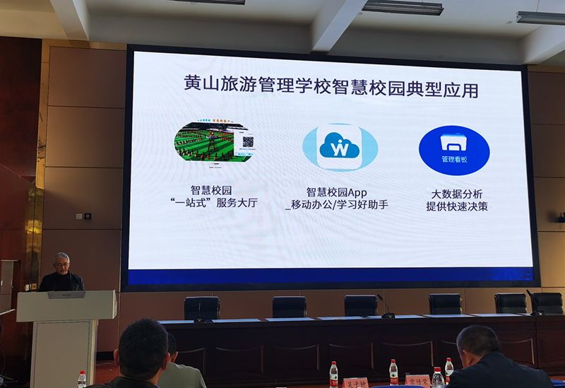 最后,黃山旅游管理學(xué)校網(wǎng)絡(luò)信息中心主任王亦農(nóng)就學(xué)校信息化教學(xué)與應(yīng)用推進經(jīng)驗進行了分享。他講到,選擇標準的、高質(zhì)量的平臺是職業(yè)院校智慧校園建設(shè)的捷徑,目前學(xué)校已建成基于智慧校園平臺的“一站式”服務(wù)大廳,師生還可通過App實現(xiàn)移動辦公、隨處學(xué)習(xí)。大數(shù)據(jù)分析為學(xué)校領(lǐng)導(dǎo)決策提供數(shù)據(jù)支持,實現(xiàn)精細化管理。