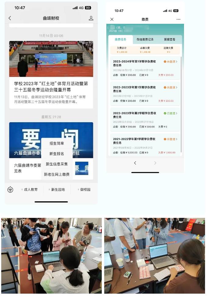 報(bào)到前在線提前完成學(xué)生信息采集、學(xué)費(fèi)繳納等流程,將迎新前的各項(xiàng)手續(xù)、服務(wù)提前辦、在線辦,比起傳統(tǒng)到校排隊(duì)報(bào)名、繳費(fèi),每名學(xué)生至少節(jié)約50%的辦理時(shí)間,每學(xué)年省去了1名財(cái)務(wù)老師連續(xù)4天手工核對新生繳費(fèi)信息的時(shí)間。同時(shí)學(xué)校領(lǐng)導(dǎo)也可以通過智慧校園平臺及時(shí)掌握學(xué)生的報(bào)名情況和繳費(fèi)情況,為后續(xù)的教學(xué)和管理提供更好的保障。