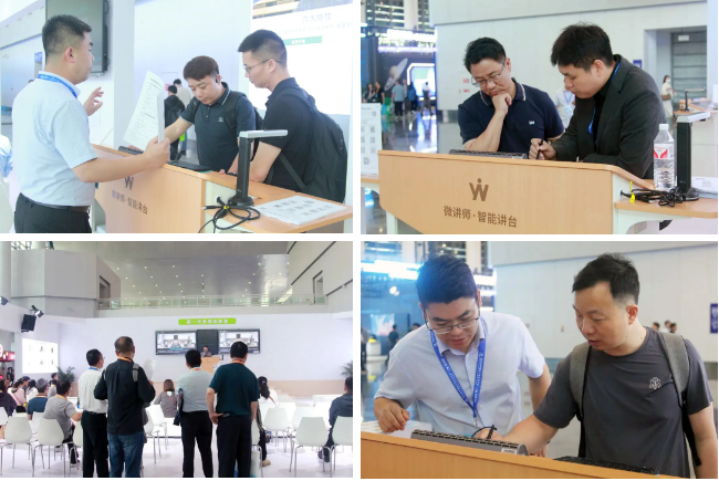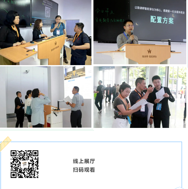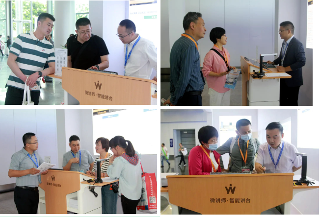 展會(huì)期間,依能團(tuán)隊(duì)為參展觀眾呈現(xiàn)了許多精彩的交流與分享,彼此共聊理念、共話合作。本次展會(huì)實(shí)景搭建了新一代多媒體教室,設(shè)計(jì)了方案講解區(qū)、多個(gè)智能講臺(tái)體驗(yàn)區(qū),還創(chuàng)新開(kāi)發(fā)了線上展廳,突破時(shí)空限制,觀眾掃碼即可感受方案落地后的直觀效果,享受沉浸式互動(dòng)體驗(yàn),感受教育與科技的完美結(jié)合。