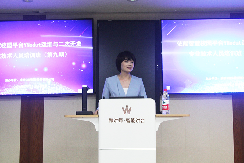 培訓(xùn)首日,成都依能科技股份有限公司總經(jīng)理謝紹群女士發(fā)表開班致辭,她首先對遠(yuǎn)道而來的老師表示熱烈歡迎,并表示,依能致力于構(gòu)建一個(gè)思想交流和經(jīng)驗(yàn)分享的平臺(tái),期待每位參與者都能從中汲取養(yǎng)分,成為推動(dòng)智慧校園建設(shè)與應(yīng)用的中堅(jiān)力量。她強(qiáng)調(diào),依能與所有信息工作者肩負(fù)著共同的歷史使命,即幫助學(xué)??缭叫畔⒒镍櫆?,將信息技術(shù)融入到學(xué)校管理和教學(xué)的每個(gè)環(huán)節(jié),提升學(xué)校教學(xué)質(zhì)量與管理水平。依能誠邀各位攜手并進(jìn),共同書寫學(xué)校數(shù)字化轉(zhuǎn)型新篇章。