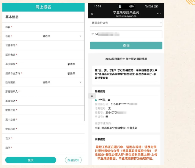 考生及家長可通過公眾號實(shí)時(shí)查詢報(bào)名狀態(tài)、審核進(jìn)度及最終錄取結(jié)果。系統(tǒng)提供了多種查詢方式,如按姓名、準(zhǔn)考證號、身份證號等,方便考生快速找到自己的錄取信息,考生無需再到學(xué)校領(lǐng)取紙質(zhì)版錄取通知書,實(shí)現(xiàn)了錄取結(jié)果的即時(shí)推送與查詢。