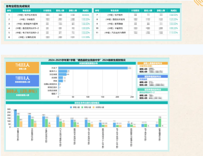 利用大數(shù)據(jù)分析技術(shù),平臺(tái)對招生數(shù)據(jù)進(jìn)行深入挖掘和分析,為學(xué)校提供招生策略調(diào)整的依據(jù)。通過數(shù)據(jù)分析,德昌職中可以更精準(zhǔn)地把握市場需求和考生需求,優(yōu)化專業(yè)設(shè)置和招生策略,提升招生質(zhì)量。同時(shí),學(xué)校還可通過系統(tǒng)了解招生工作的實(shí)際效果和存在的問題,為未來的招生工作提供決策支撐。