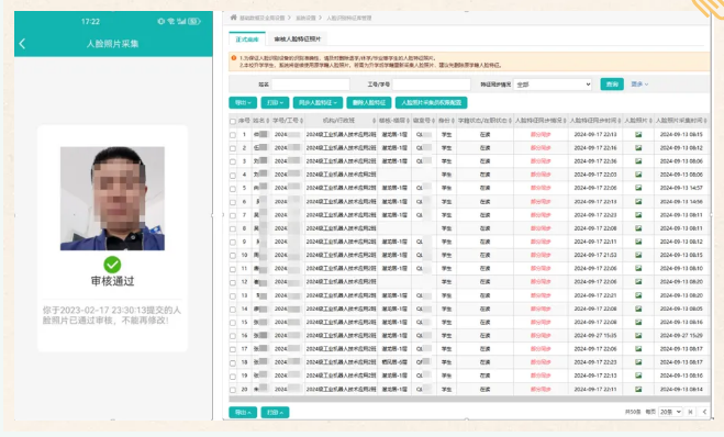 ▲師生App自助采集人臉和人臉特征庫數(shù)據(jù)列表