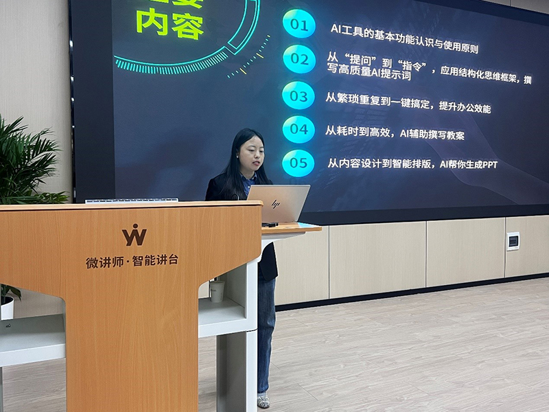 下午,依能職業(yè)教育研究所黎杉杉和羅娜兩位老師分別作了《AI工具助力教學(xué)工作效率提升》、《AI數(shù)字人助力精品課程資源建設(shè)》的技術(shù)報(bào)告。通過理論講解與案例演示相結(jié)合的方式,系統(tǒng)闡述了數(shù)字人技術(shù)在資源建設(shè)領(lǐng)域的應(yīng)用,重點(diǎn)分享了主流 AI 工具的選型策略、提示詞工程方法,并結(jié)合教學(xué)場(chǎng)景演示了 AI 輔助教案生成、智能課件制作、文檔潤色及數(shù)字資源創(chuàng)作等實(shí)用技巧。