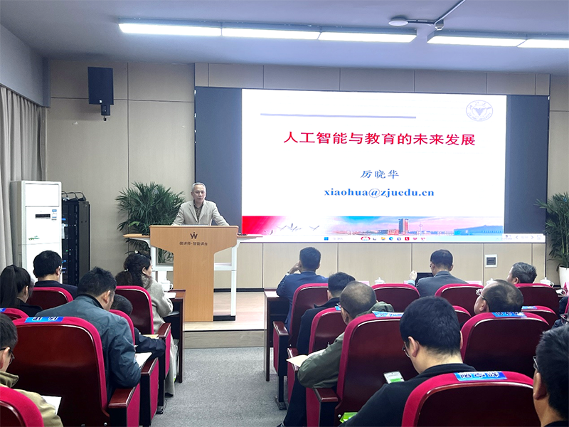 隨后,浙江大學(xué)教授級(jí)高級(jí)工程師、浙江省教育信息化評(píng)價(jià)研究中心兼職研究員厲曉華教授以《人工智能與教育的未來發(fā)展》為題,從AI技術(shù)的發(fā)展、人工智能技術(shù)對(duì)人類生活的影響、AI技術(shù)在學(xué)校的具體應(yīng)用等方面,剖析了AI技術(shù)對(duì)教育生態(tài)的重塑。
