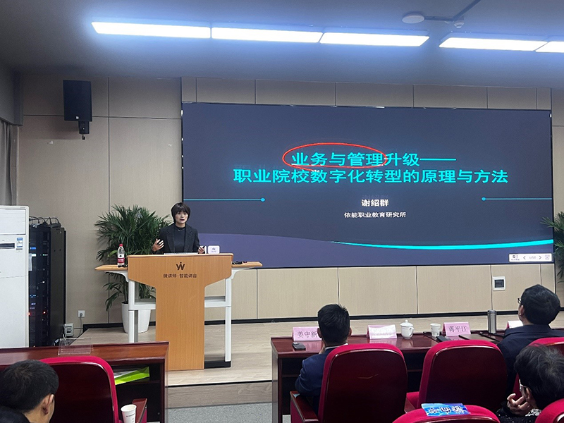 第二天,依能職業(yè)教育研究所研究員謝紹群作了《職業(yè)院校數(shù)字化轉(zhuǎn)型原理與方法》的報(bào)告,幫助與會(huì)學(xué)員們理清職業(yè)院校數(shù)字化轉(zhuǎn)型的思路,理解職業(yè)院校數(shù)字化轉(zhuǎn)型的方法,掌握職業(yè)院校數(shù)字化轉(zhuǎn)型的支撐工具。