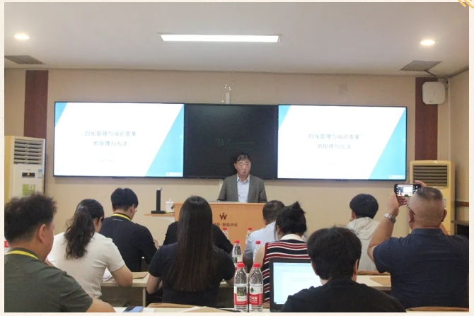 7月23日上午,成都依能科技股份有限公司創(chuàng)始人、董事長羅輝教授圍繞科學(xué)管理與組織變革,為參訓(xùn)學(xué)員拉開深度思考的序幕。他結(jié)合多年研究與實(shí)踐經(jīng)驗(yàn),系統(tǒng)闡釋了“四化管理”(系統(tǒng)化、規(guī)范化、精細(xì)化、信息化)的核心原理,剖析了高績效領(lǐng)導(dǎo)力的關(guān)鍵要素,并通過典型案例拆解了干部應(yīng)該具備的思維方法與模式。針對職業(yè)院校普遍關(guān)注的轉(zhuǎn)型路徑問題,詳細(xì)介紹了“職業(yè)院校數(shù)字化轉(zhuǎn)型成熟度模型”的研制背景、成熟度等級定義、能力域要求及具體實(shí)施路徑,為院校提供了可操作的轉(zhuǎn)型指南。